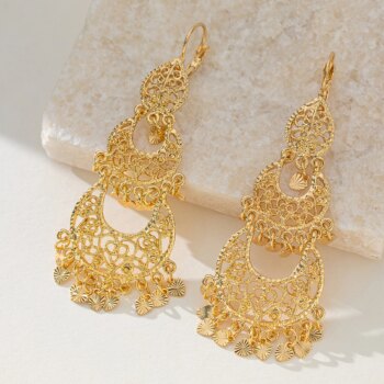 Muslim Moon Shape Drop Earrings Gold Color Arabic Middle East Women Jewelry Long Earring Luxury Wedding Gifts