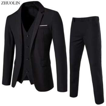 Elegant Men Suits 3 Pieces 2 Blazers Sets Wedding Jackets Vest Pants Classic 2025 Formal Coats Korean Costumes