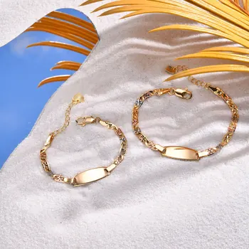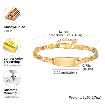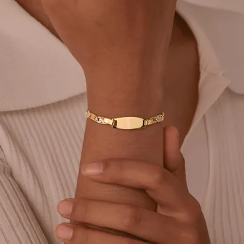 Vnox Free Custom Mom Daughter Son Name Bracelets, Personalized Name Date Text ID Plate Bar Bracelet for Women Girls Gift